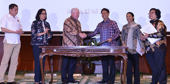 Pemerintah menyampaikan telah berhasil mengakuisisi atau mengambil alih saham PT Freeport Indonesia melalui penandatanganan
