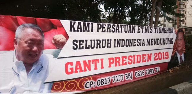 Salah satunya terlihat di ruas Jalan S. Parman, Jakarta Barat tepatnya di depan Central Park Mall terpasang dukungan etnis Tionghoa Indonesia yang bertuliskan "Kami Etnis Tionghoa Indonesia Mendukung Ganti Presiden 2019."