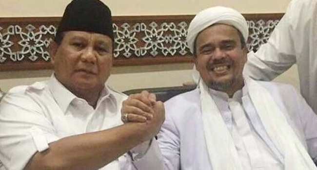 "Habib Rizieq Shihab yang saya nilai bisa memberi kesejukan kepada bangsa ini karena di situ tugas-tugas beliau menyatakan komitmennya kepada NKRI, Pancasila dan undang-undang Dasar 1945," kata Ketua Umum Partai Gerindra Prabowo Subianto di kediamannya di Jl Kertanegara No 4, Jakarta Selatan, Minggu (29/7).