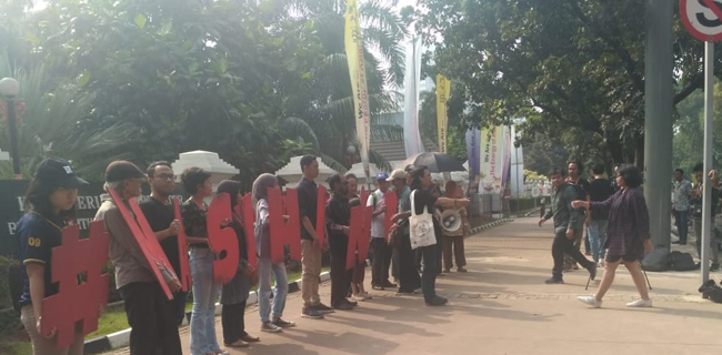 "Kita tak mau bermaaf-maafan, tak mengobati luka hati keluarga korban," teriakan salah seorang orator dalam aksi, Kamis (2/8).