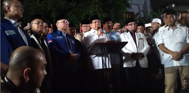 Di kesempatan itu, Prabowo juga mengucapkan terima kasih terhadap PKS dan PAN yang mempercayakan dirinya memilih cawapres dan sepakat dengan hasil yang dipilih.