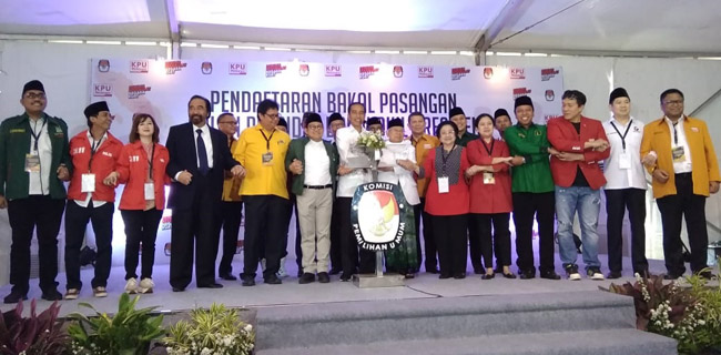 Hadir mendampingi Jokowi-Ma'rufyakni Ketua Umum PDIP Megawati Soekarnoputri, Ketua Umum Nasdem Surya Paloh, Ketum Golkar Airlangga Hartarto, dan Ketum PPP Rohamurmuziy, serta Ketua Umum PKB Muhaimin Iskandar.