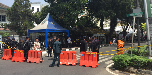 Untuk memudahkan akses pasangan calon presiden dan calon wakil presiden bersama rombongan mendaftar ke Komisi Pemilihan Umum (KPU), aparat Polres Jakarta Pusat menutup satu lajur jalan Imam Bonjol, Jakarta Pusat.