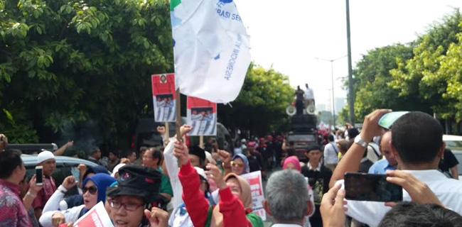 "Kita mengantarkan Prabowo dan Sandiaga Uno sebagai pemimpin baru Indonesia. Prabowo presiden, Prabowo presiden," ujar salah seorang orator di atas modal komando, Jumat (10/8).
