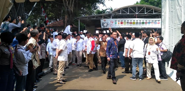 Kantor Berita Politik RMOL, Prabowo-Sandi tiba di kantor KPU RI sekira pukul 13.35 WIB. Tidak ada pernyataan yang keluar dari mulut keduanya.