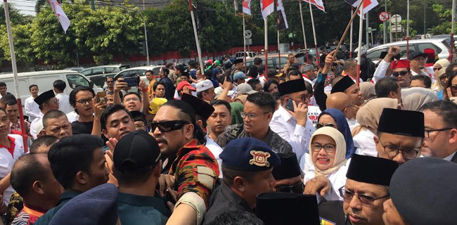 Ketegangan terjadi antara personel Brimob dan para relawan Prabowo Subianto-Sandiaga Uno yang tak memiliki