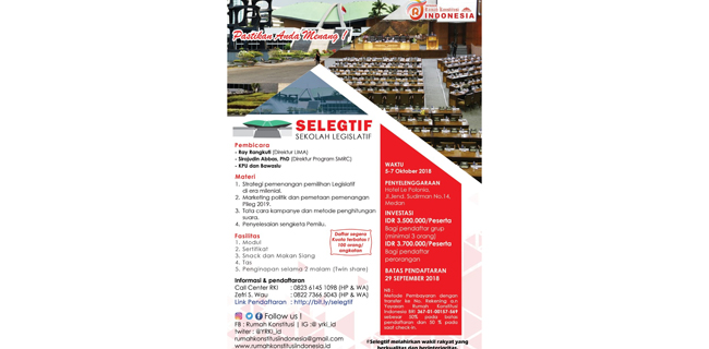 Untuk itu, Yayasan Rumah Konstitusi Indonesia (YRKI) berinisiatif dengan membuka program Sekolah Legislatif.