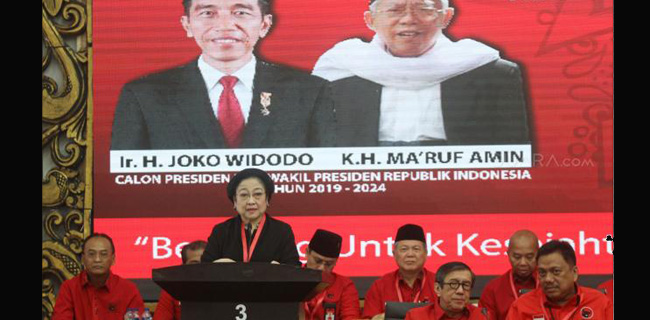 Seragam PDIP pemberian Megawati itu juga dikenakan Jokowi saat lebih dulu meninggalkan acara rakornas.