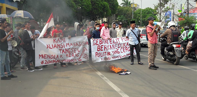 “Kami dengan tegas menolak rencana deklarasi tersebut di Tangsel yang dapat memecah belah persatuan di masyarakat Tangsel,†teriaknya saat aksi.