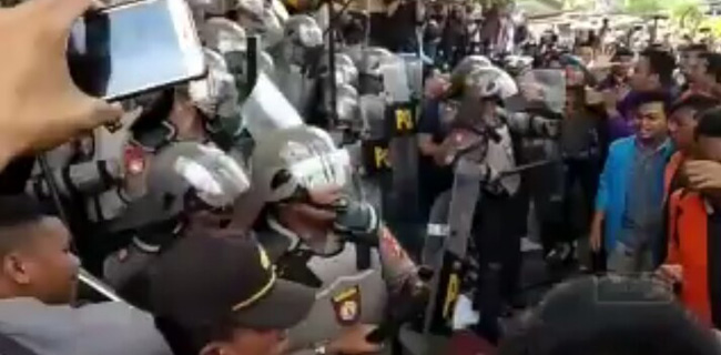 Pantauan redaksi sempat terjadi saling dorong antara pihak keamanan dengan pengunjuk rasa saat hendak memasuki gedung DPRD. Namun tak berlangsung lama. Sejumlah koordinator dari masing-masing kampus menenangkan peserta aksi, dan polisi menjaga jarak.