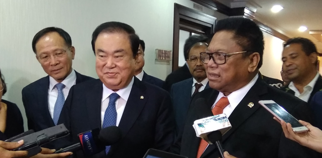 Hal tersebut diungkapkan Ketua Parlemen Korsel, Moon Hee-sang saat berkunjung ke Parlemen Indonesia di Jakarta, Jumat (14/9). Rombongan Moon Hee-sang diterima Ketua DPR RI, Oesman Sapta.