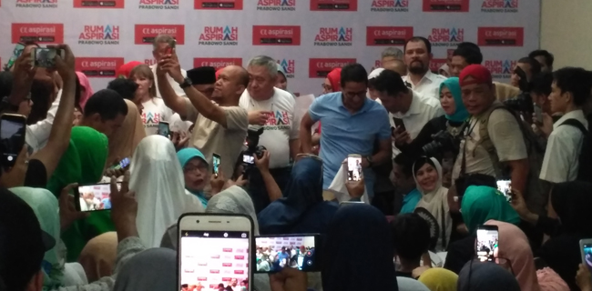 Sandi hadir untuk mendengarkan aspirasi masyarakat. Masyarakat yang hadir di rumah yang didominasi warna krem itu pun nampak tumpah ruah.