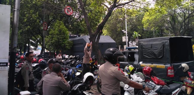 Kantor Berita Politik RMOL, kantor KPU RI yang berada di Jalan Imam Bonjol, Menteng, Jakarta Pusat sudah mulai ramai dengan aparat kepolisian. Mereka terlihat tengah duduk santai sembari menunggu waktu pelaksanaan acara penetapan calon.