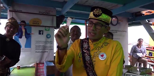 Pedagang bernama Aan itu secara mendadak memberi uang Rp 100 ribu kepada Sandi yang sedang menyapa masyarakat di pasar.