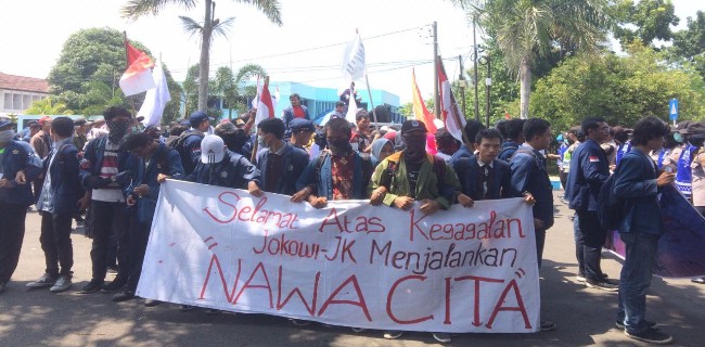 RMOLBengkulu di lapangang, massa membawa atribut kampanye dan spanduk yang bertuliskan "Selamat atas kegagalan Jokowi-JK menjalankan Nawacita, Negeri agraris petani miris, tanah kita banyak dan subur tetapi petani melarat, jangan hanya mengandalkan sektor industri dan merupakan sektor pertanian, kebijakan pemerintah menyengsarakan rakyat".