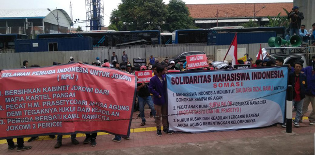 Mereka meminta Presiden Jokowi mencopot Jaksa Agung HM Prasetyo dan Menteri Perdagangan Enggartiasto Lukita.