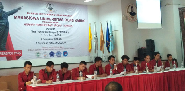 Menurut Ketua BEM FISIP UBK Rikman Sanmas, dalam waktu dekat, seluruh mahasiswa UBK turun ke jalan menggelar unjuk rasa. Mereka akan menuntut pemerintah memenuhi Tritura yakni turunkan harga bahan pokok, turunkan utang negara, dan turunkan tingkat pengangguran.