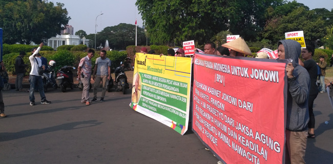 "Kami meminta Presiden segera memecat anak buah Surya Paloh yaitu Enggartiasto Lukita dari jabatannya sebagai Menteri Perdagangan," tegas Choki dalam aksi mereka di depan Istana Negara, Gambir, Jakarta Pusat, Jumat (28/9).