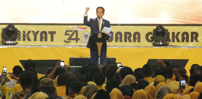 Di hadapan ribuan kader Golkar, Presiden Jokowi menekankan elit tidak hanya memaksa rakyat untuk terus mendengar, melainkan elit harus mendengar aspirasi rakyat.