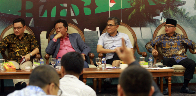 Dari kiri: Anggota DPR Fraksi Partai Golkar, TB Ace Hasan Sadzily; Anggota DPR Fraksi Partai Gerindra, Nizar Zahro; Anggota DPR Fraksi PDIP, Budiman Sudjatmiko; dan Anggota DPR Fraksi PAN, Yandri Soesanto menjadi pembicara dalam diskusi Forum Legislasi yang bertajuk "Polemik Regulasi Dana Kelurahan" di Gedung Nusantara III, Komplek Parlemen Senayan, Jakarta (Selasa, 23/10). Tedy Kroen/RM
