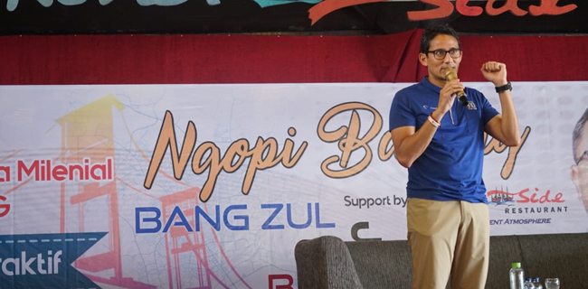 "Karena 120 juta pasar konsumsi yang ada di Indonesia di tahun 2030 itu didominasi oleh milenial. Seandainya milenial itu tidak menjadi pengusaha, mereka akan jadi konsumen saja. Mereka harus menjadi produsen. Mereka harus menikmati dari pasar yang besar ini jangan sampai ini diberikan pada produk-produk asing," ungkap Sandi.
