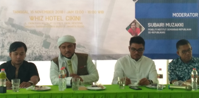 Jurubicara Alumni 212, Habib Novel Bamukmin, dalam diskusi bertajuk "Reuni Akbar Alumni 212, Melacak Motif, Menimbang Implikasi, Sosial Politik" di Cikini, Jakarta Pusat, Jumat (16/11).