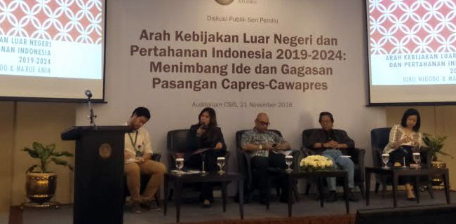 Dosen Universitas Pertahanan Kusnanto Anggoro menjelaskan meski belum memaparkan visi misi, pernyataan kedua paslon bisa menjadi pintu masuk arah kebijakan luar negeri yang akan diambil.