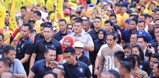 Relawan Gojo tidak hanya ikut jalan sehat, tapi juga memasang berbagai atribut Gojo dan Golkar di sepanjang area tersebut.