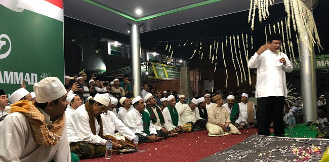 . Calon presiden nomor urut 02, Prabowo Subianto menghadiri peringatan Maulid Nabi Muhammad SAW di Pondok Pesantren Walisongo, Situbondo, Jawa Timur (Jatim) asuhan KH RA Mochammad Cholil As'sad Syamsul Arifin.