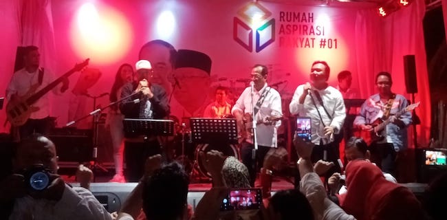 Sebagai bentuk nyata atas dukungannya pada relawan yang berkumpul di Rumah Aspirasi Rakyat 01, Menteri Perhubungan itu ikut hadir dalam pertunjukan musik yang digelar Minggu malam.