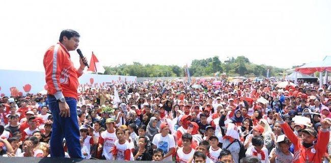 "Jokowi menurunkan pajak UMKM dari 1 persen menjadi 0,5 persen, kemudian bunga kredit usaha rakyat turun dari 22 persen menjadi 7 persen. Bahkan, Jokowi mengeluarkan kredit tanpa agunan dari Rp 5 juta menjadi Rp 25 juta," kata pria yang akrab disapa Ara itu.