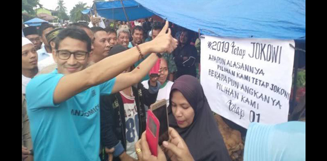 "Ini mau dibuat seolah-olah ada penolakan warga di Pasar Kota Pinang ke Bang Sandi. Padahal kita ketahui bahwa masyarakat sangat antusias berdesak-desakan untuk bertemu Bang Sandi. Kelihatannya ada yang panik dengan fenomena Bang Sandi yang dicintai emak-emak. Semoga ini bukan dari kubu Pak Jokowi-Mar'uf yang menyeting," papar koordinator Prabowo-Sandi Digital Team (Pride) tersebut.