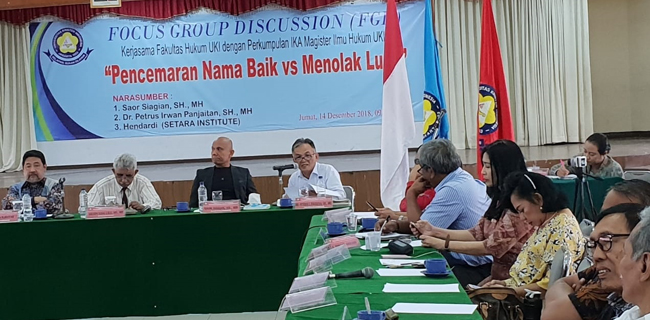 Sementara Petrus Panjaitan menambahkan, hasil FGD akan dijadikan semacam pendapat hukum resmi dari Ikatan Alumni UKI sebagai penyelenggara. Dan akan diberikan ke pemangku kepentingan untuk dikaji lebih lanjut.