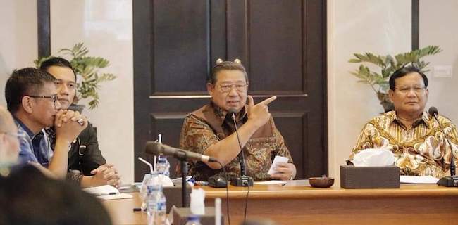 Jari tangan Ketua Umum Partai Demokrat Susilo Bambang Yudhoyono (SBY) menjadi sorotan saat pertemuan dengan calon presiden, Prabowo Subianto, Jumat (21/12) sore.