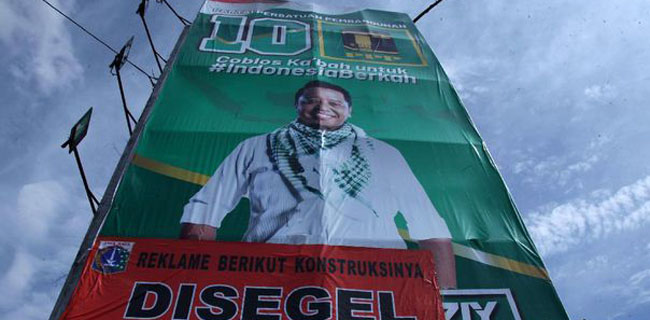 Satpol PP DKI Jakarta menyegel billboard bergambar Romi di wilayah Jakarta Barat karena dianggap menyalahi aturan.