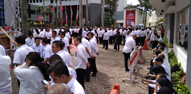 Ratusan pegawai negeri sipil (PNS) yang berada di lingkungan Kemenkumham kompak berkumpul untuk mendengarkan sambutan Menteri Yasonna H. Laloly.