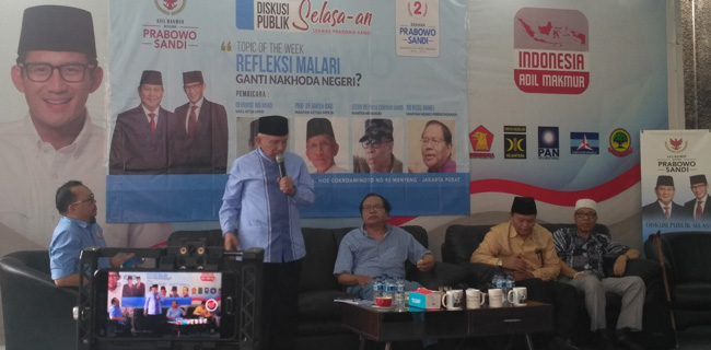"Jadi Pak Jokowi itu emoh demokrasi, memang tidak mau," ujar Amien dalam diskusi bertajuk "Refleksi Malari Ganti Nahkoda Negeri?" di kantor Seknas Prabowo-Sandi, Jalan Hos Cokroaminoto, Menteng, Jakarta Pusat, Selasa (15/1).