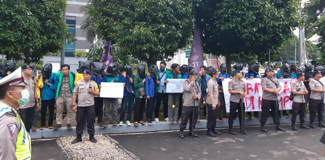 Massa aksi yang menutup kepala dengan plastik kresek hitam saat ini sedang ditangani polisi.