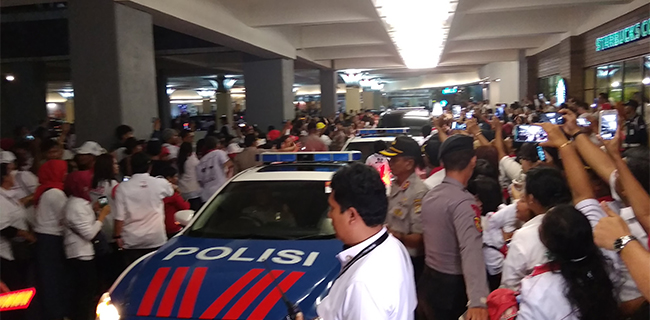 Pendukung pasangan calon 01 kompak meneriakkan yel-yel dukungan kepada Jokowi saat iring-iringan Prabowo-Sandi melintas.