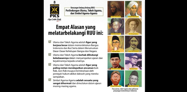 Media sosial PKS mencantumkan gambar tokoh utama NU dengan keterangan, jika menang Pemilu 2019, PKS akan mendorong RUU Perlindungan Ulama, Tokoh Agama, dan Simbol Agama.