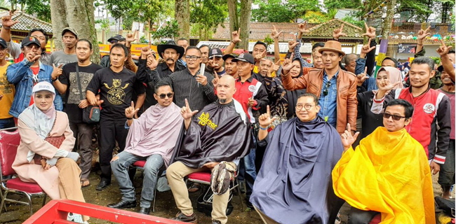 Fadli Zon, Ahmad Dhani dan Sang Alang mencukur rambut bersama Persatuan Pangkas Rambut Garut (PPRG) yang langsung dihadiri Rudi, ketua umum dari PPRG.