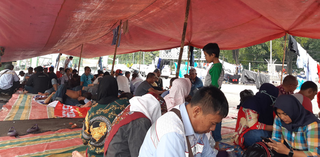 long march dari posko perjuangan di Plumpang, Jakarta Utara sampai di depan Istana Negara. Setiba di lokasi, mereka langsung mendirikan tenda.