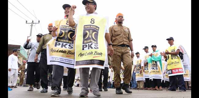Di tengah cuaca mendung, Sohibul Iman tak canggung berbaur bersama kader dan simpatisan dengan turut menjadi poster berjalan.