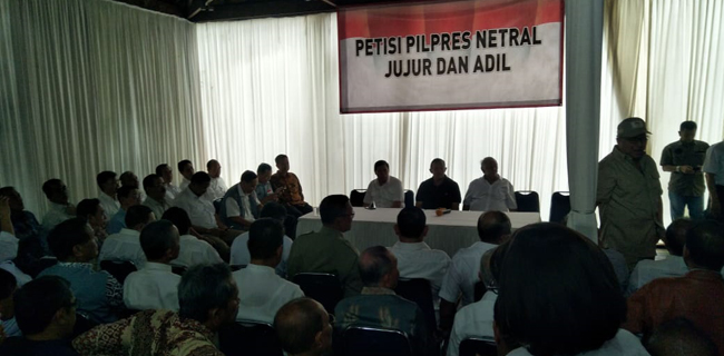 Saat ini, sekitar 80 orang dari purnawirawan TNI dan Polri juga tokoh agama, tokoh masyarakat dan para akademisi bergabung bersama dalam petisi Pilpres yang netral, jujur dan adil sudah berkumpul di tempat acara.