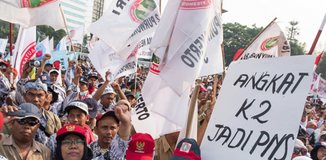 "Dan Presiden Jokowi harusnya bisa bersikap tegas kepada aparatur negara di bawahnya. Sebab bila presidennya bisa bersikap tegas dan mendengar aspirasi guru honorer tentu masalah semacam ini tidak akan terjadi," ungkapnya.