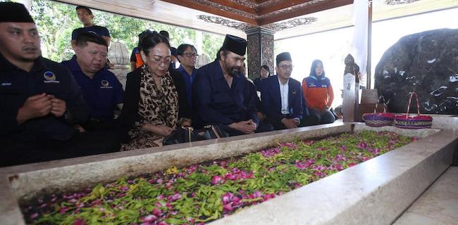 Ziarah dilakukan dalam rangkaian safari Surya di Jawa Timur. Dia tiba di Blitar pada pukul 09.50 WIB dengan didampingi Sekjen Nasdem Johnny G Plate; Ketua Bappilu DPP Partai Nasdem, Effendy Choirie (Gus Choi); dan Ketua DPP Nasdem Willy Aditya. Putri Bung Karno, Sukmawati Soekarnoputri juga turut menemani.