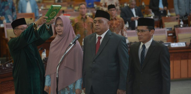 . Musthafa Bakri dilantik menjadi anggota DPR RI pengganti antar waktu (PAW) pada Sidang Paripurna DPR, di Gedung Nusantara II, Parlemen, Jakarta, Rabu (13/2).