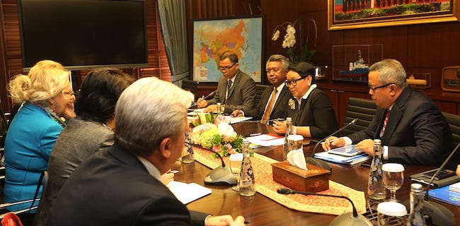 "Saya menerima kunjungan Member of the Board (Minister) Eurasian Economic Commission (EEC) H.E. Tatyana Dmitriyevna Valovaya)," kata Menlu Retno dalam akun Twitter pribadinya.