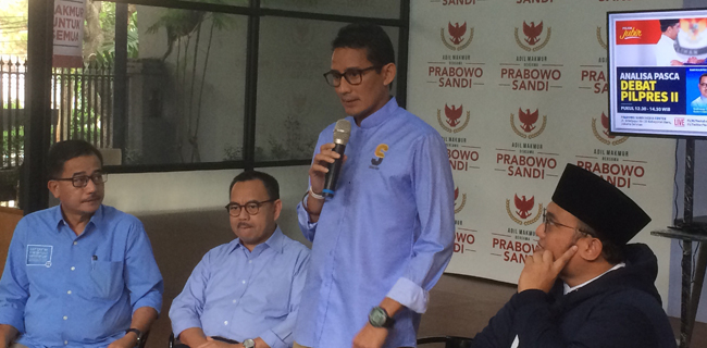 "Saya enggak yakin pak Jokowi menggunakan itu walau teknologi itu ada. Saya yakin kedua calon ini jujur," kata Sandi di Media Center Prabowo-Sandi, Kebayoran Baru, Jakarta Selatan, Senin (18/2).