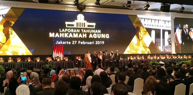 . Presiden Joko Widodo menghadiri Sidang Pleno Mahkamah Agung (MA) RI Tahun 2019 di Jakarta Convention Center (JCC), Jakarta, Rabu (27/2).